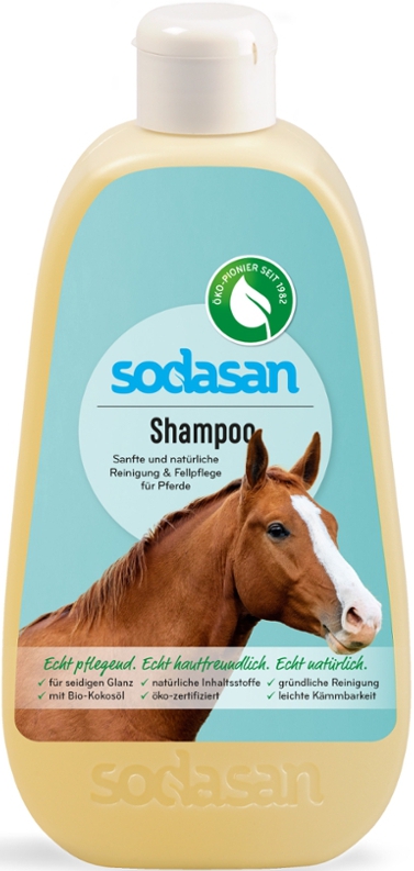 Das Sodasan Pferdeshampoo pflegt und reinigt das Fell gründlich auf natürliche Weise. Das hochwertige Shampoo neutralisiert durch einen natürlichen Geruchsabsorber störende Gerüche. Natürliche, milde Tenside und Bio Kokosöl sorgen für eine spürbar leichte Kämmbarkeit und ein seidig glänzendes Fell. Eine Duftkombination aus Bergamotte, Eucalyptus und Patchouli spendet dem Fell eine langanhaltende, angenehme Frische.