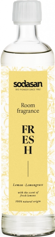 Der Sodasan Raumduft wird in einem Glasflakon geliefert und enthält Inhaltsstoffe natürlichen Ursprungs.