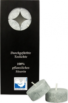 Stearin Teelicht Set mit jeweils zehn durchgefärbten Teelichter zur Verwendung als moderne Tischdekoration. Teelichtglas seperat erhältlich.