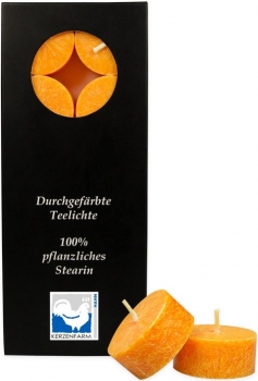 Stearin Teelicht Set mit jeweils zehn durchgefärbten Teelichter.