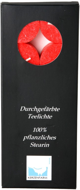 Stearin Teelicht Set mit jeweils zehn durchgefärbten Teelichter.