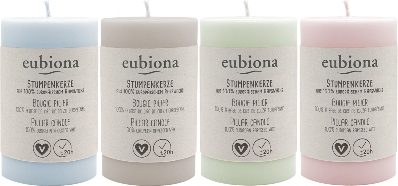 Handgefertigte Stumpen Rapskerzen in zarten Farbtönen