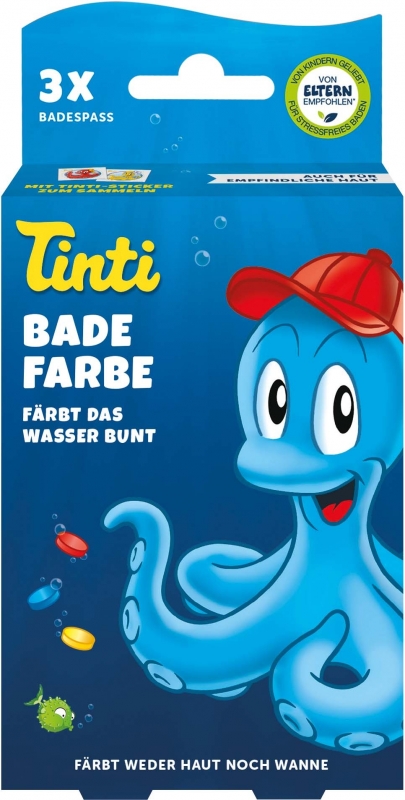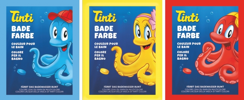 Wenn fröhliche Blubberblasen im Badewasser aufsteigen und sich der gesamte Inhalt der Badewanne rot, gelb oder blau färbt, dann sind das die sprudelnden Badewasserfarben von Tinti.