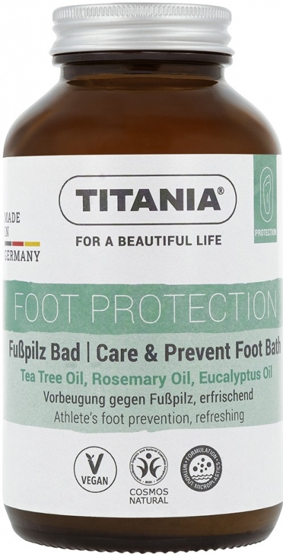 Das erfrischende Titania Fußpilz Bad enthält wertvolle Öle aus Teebaum, Rosmarin, Pfefferminze und Eukalyptus. Das Fußbad verwöhnt und erfrischt beanspruchte Füße und kann regelmäßig angewendet zur Vorbeugung gegen Fußpilz beitragen.