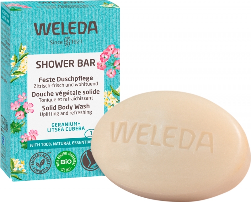Die Weleda feste Duschpflege verspricht natürliche Pflege. Mit natürlicher Grundseife aus pflanzlichen Ölen sowie wertvoller Bio Sheabutter bietet sie eine zart-schaumige Reinigung. 100 % natürliche ätherische Öle und Pflanzenextrakte sorgen für die charakteristische Duftnoten. Zitrisch-frischer, blumiger Duft von natürlichen ätherischen Ölen und Pflanzenextrakten wie Geranium und Litsea cubeba.