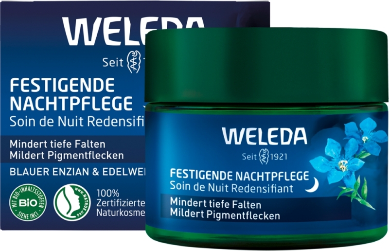 Dank dem innovativen Weleda Collagen+ Active Complex aus blauem Bio Enzian, Bio Edelweiß und Centella asiatica kann die Nachtpflege den Kollagengehalt der Haut erhöhen. Die hocheffektive Nachtpflege nährt intensiv. Für jugendlichere Haut im Schlaf. Sorgt für entspannte Gesichtszüge und einen schönen Teint am Morgen.