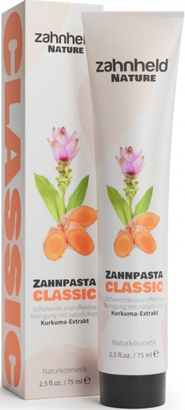 Die Zahnheld Zahncreme Classic enthält natürlichen Kurkuma-Extrakt. Die angenehme Formel wurde geschmacklich abgerundet, sodass die Minznote harmonisch und weniger intensiv wirkt. Die verfeinerte Textur sorgt zudem für eine schonende und effektive Reinigung, schützt und pflegt Zähne und Mundraum - für ein langanhaltendes, strahlendes Lächeln.